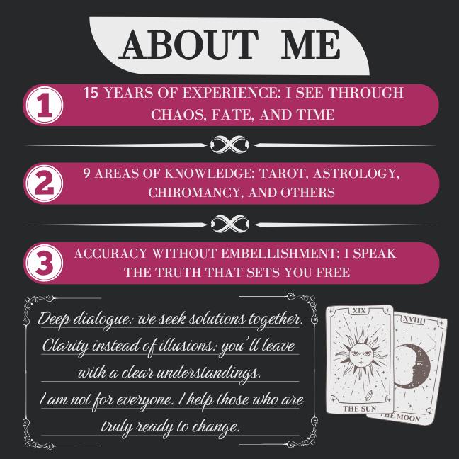 ⚠️ IMPORTANT! This reading is extremely straightforward, honest, and unbiased. If you’re not ready to hear the truth, please think twice before purchasing. My approach to this reading is extremely straightforward, and it is important to remember that Tarot readings and psychics can evoke a wide range of emotions — confusion, happiness, sadness, or something in between. The future isn’t predetermined, and not all endings are happy.