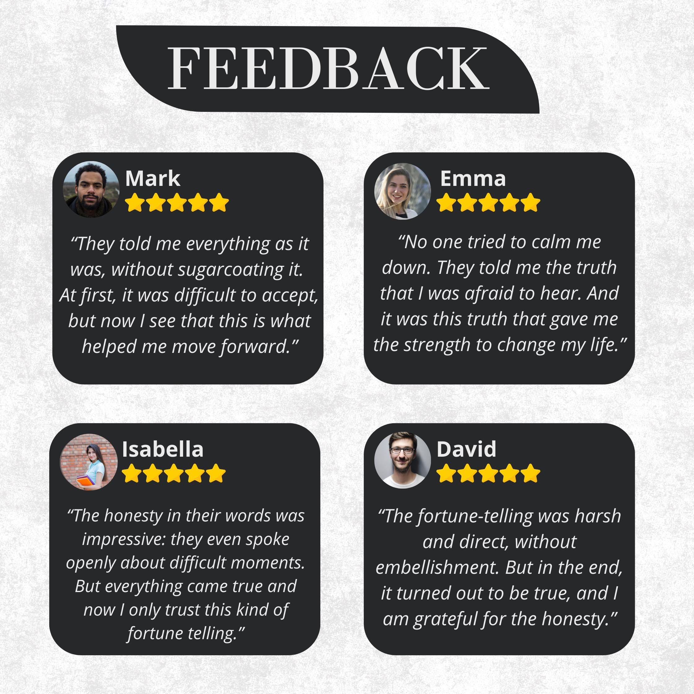 🌟 The harsh truth — you will hear what is really happening, even if it is unpleasant. No embellishment — no “smooth” words, no softening of the pain. Pure perception — I convey only what I see in the energy and the cards, without personal opinion or emotional support. No censorship — every detail and every aspect is considered as it is.