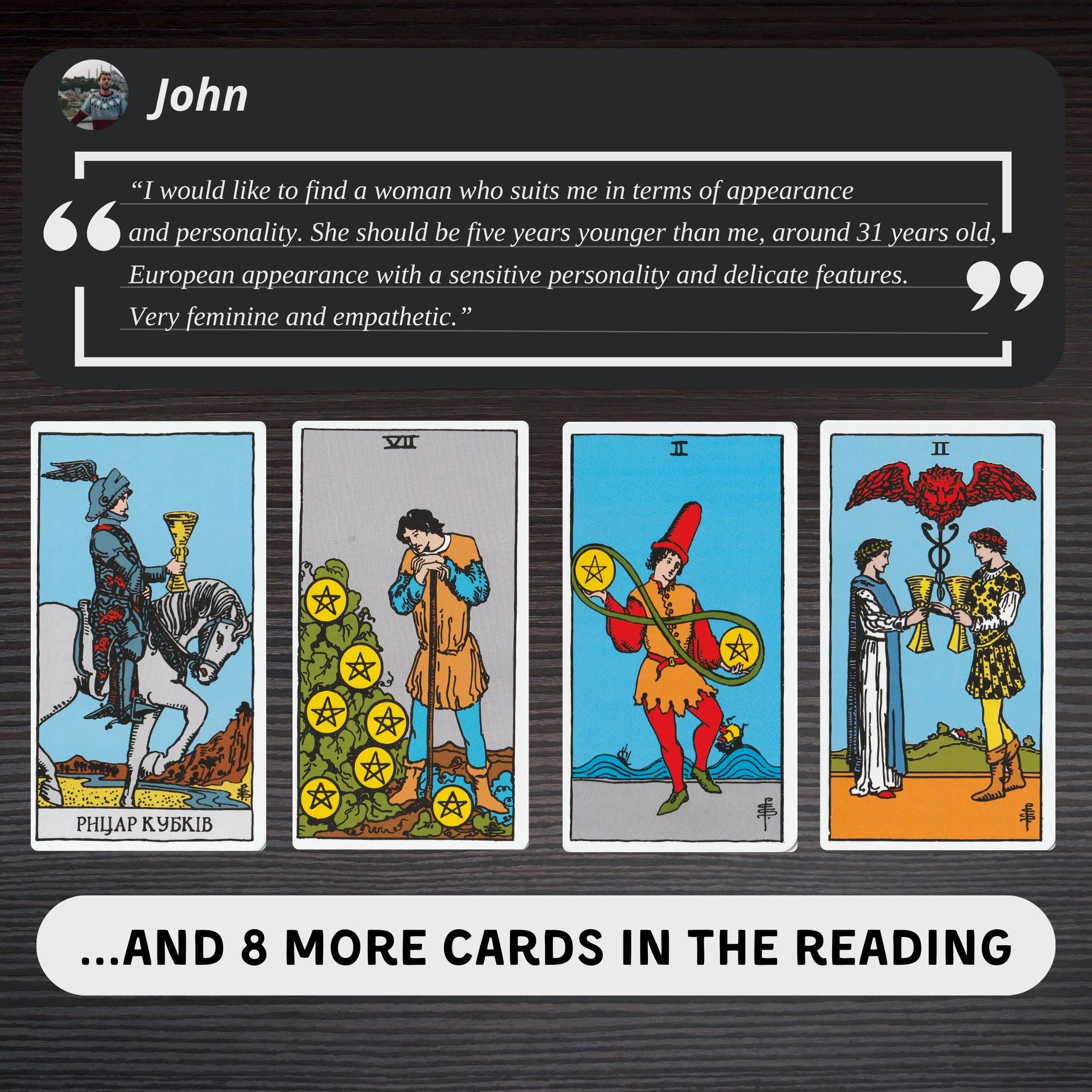 4️⃣ Receive your reading: Once we receive your details, you will receive a personalized Tarot reading in PDF format.