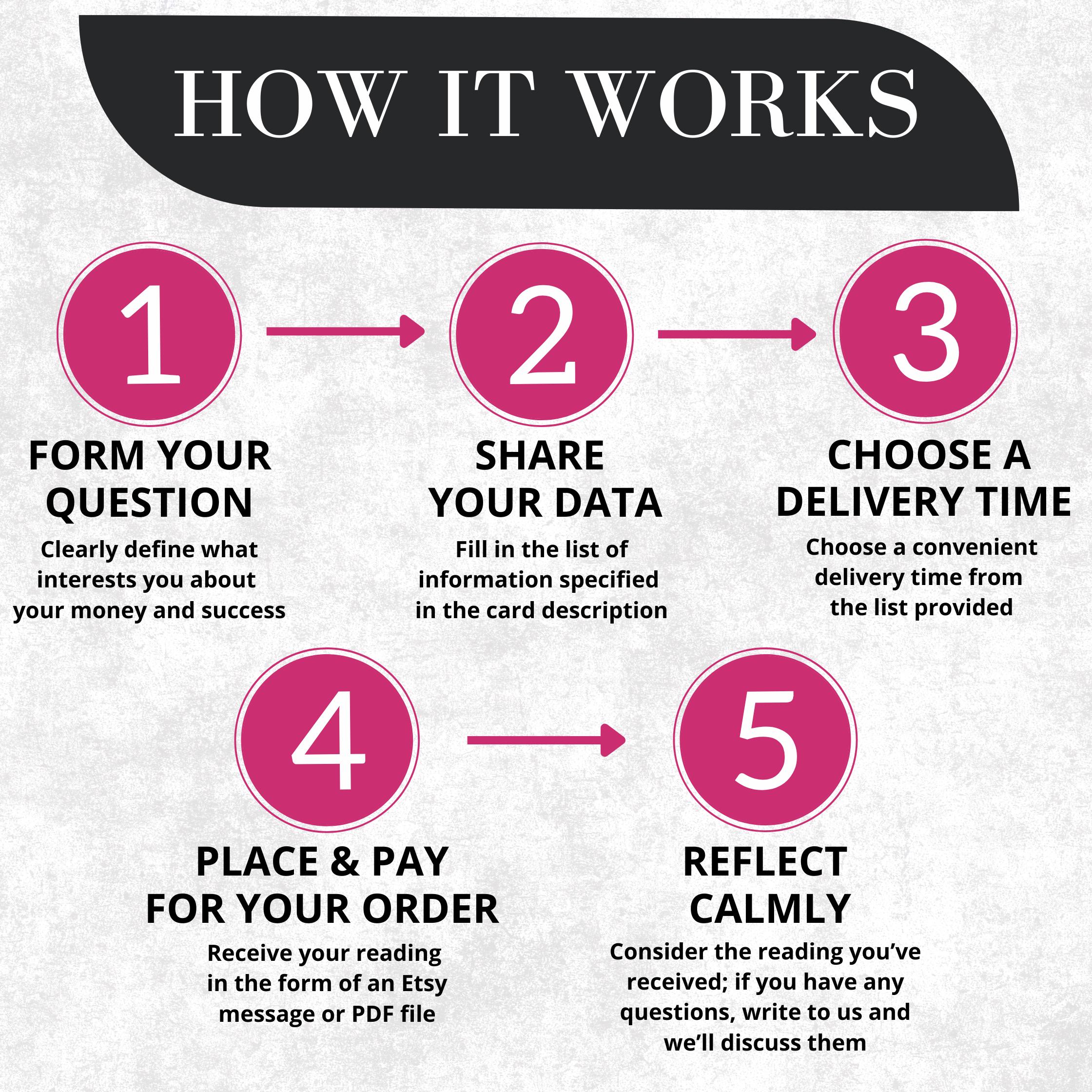 4️⃣ Receive your reading: Once we receive your details, you will receive a personalized Tarot reading in PDF format.