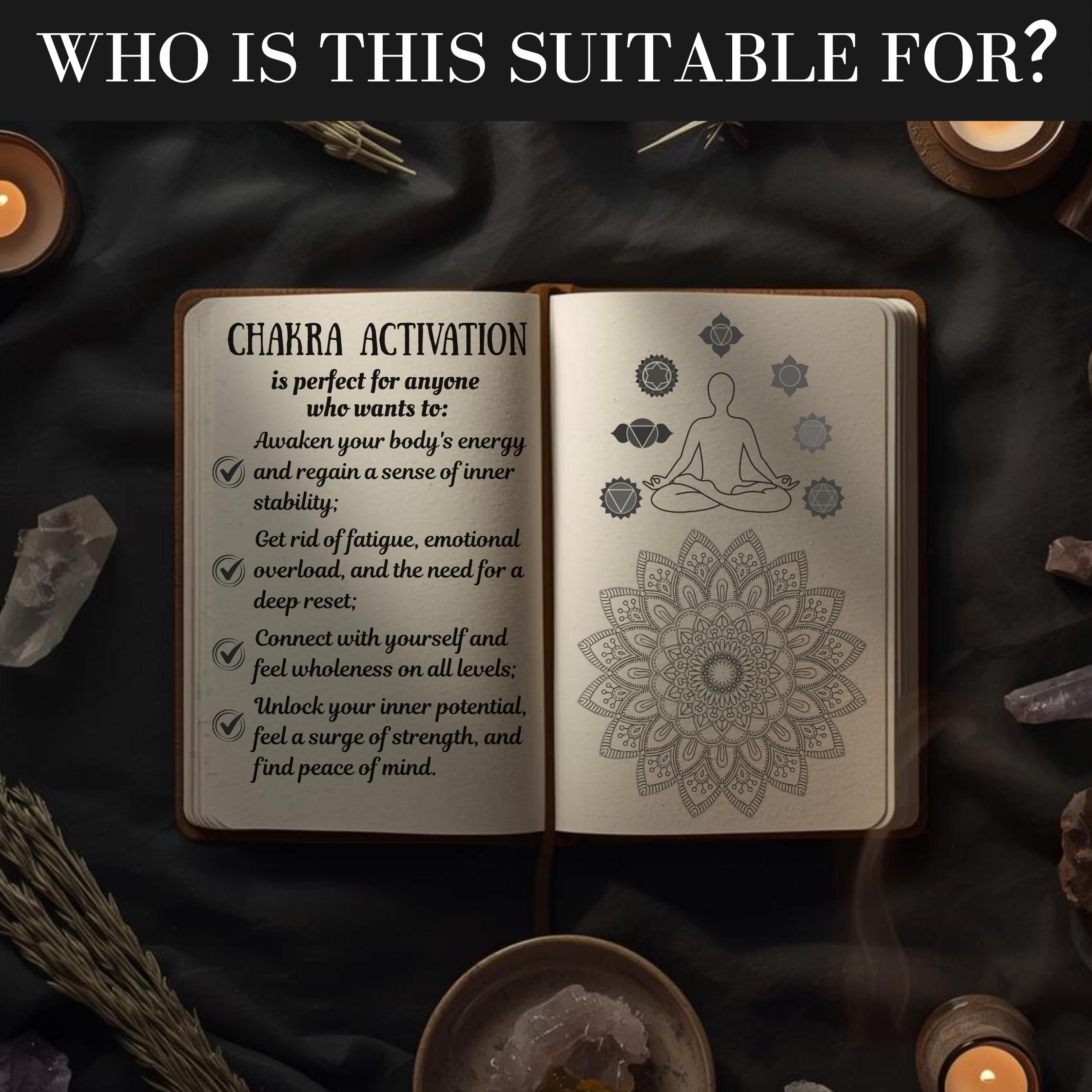 ✨ During the seven chakra ritual, you will feel a surge of energy, renewed strength, and restored inner balance. The chakras open and become balanced, which enhances concentration, stabilizes emotions, and improves overall well-being. This energy ritual helps you tune into your own body, manage your energy, and feel a deep connection with your inner self.